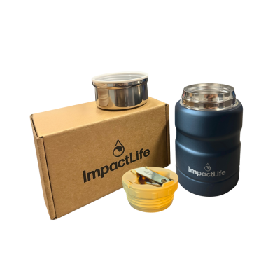 Double-wall stainless steel container with vacuum insulation. Outer lid doubles as a serving bowl. Includes a foldable spoon stored in the inner lid, which also opens for extra storage. 16 oz. Will increase to 1,100 points on 12/10.
